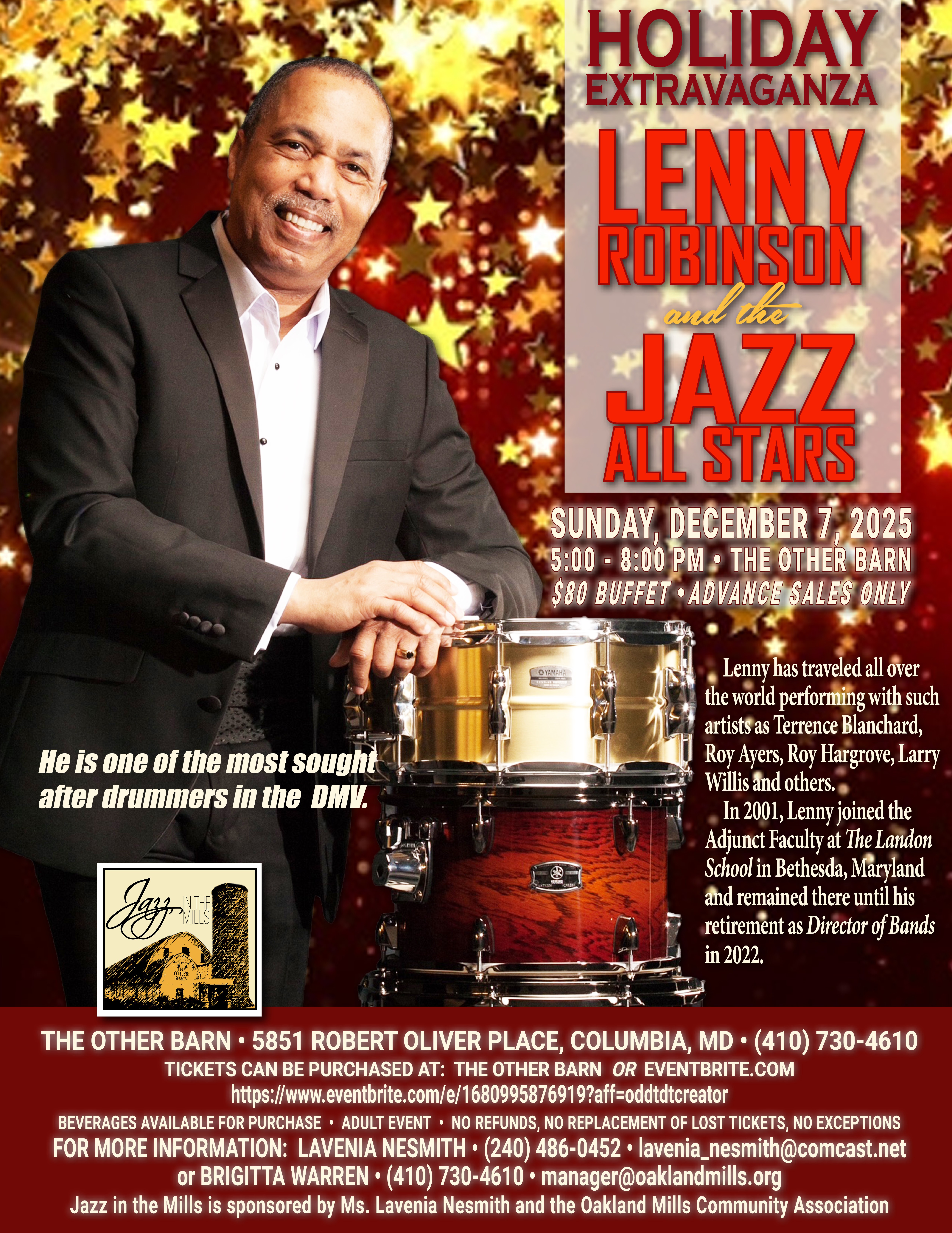 Calendar Categories Architecture Committee Appeal Board Meeting Children's Event Class Columbia Association Sponsored Event Committee Meeting Community Event Community Meeting Concert Election 2017 Elections 2019 Elections 2021 Elections 2022 Elections 2023 Elections 2024 Elections 2025 Fall Festival Holiday Jazz in the Mills Lively Arts Meeting NRAAC OM's 50th Birthday Celebration Pool Party RAC Application Deadline RAC Meeting Task Force Meeting Tenant Committee Meeting The Other Barn Office Virtual Event Vote Workshop Tags #hocoevents #totallyho #totallyhoco; #hocoevents #totoallyhoco Board Meeting Lively Arts for Little Ones totallyhoco Agenda Agenda Day Month Week December 2025 Dec 2025 Collapse All Expand All Dec 7 Sun Jazz in the Mills Holiday Extravaganza: Lenny Robinson & the Jazz All Stars @ The Other Barn Tickets Dec 7 @ 5:00 pm – 8:00 pm Info & Tickets December 2025 Dec 2025 Subscribe to filtered calendar Add to Timely Calendar Add to Google Add to Outlook Add to Apple Calendar Add to other calendar Export to XML